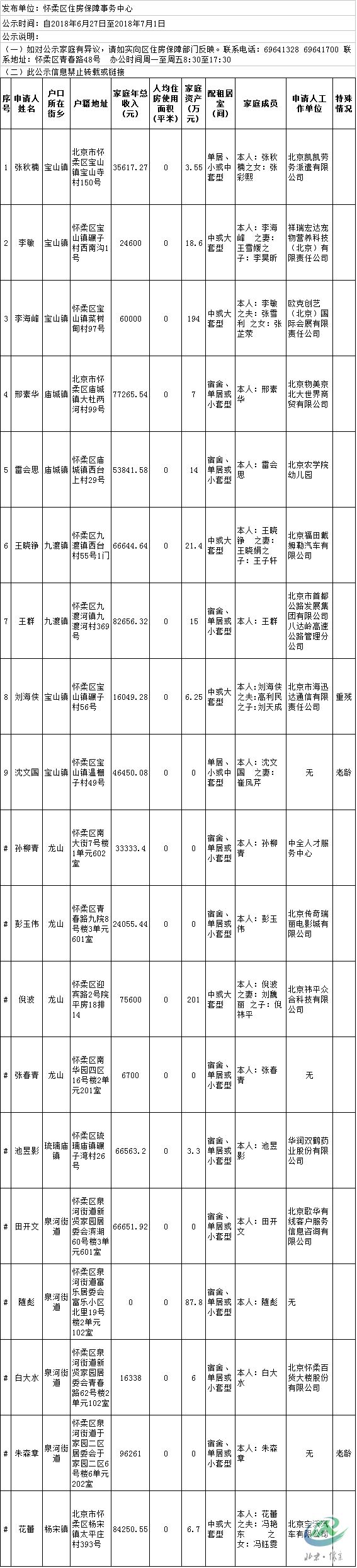 怀柔区保障性住房审核公示