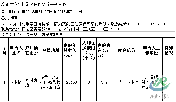 怀柔区市场租房补贴审核公示